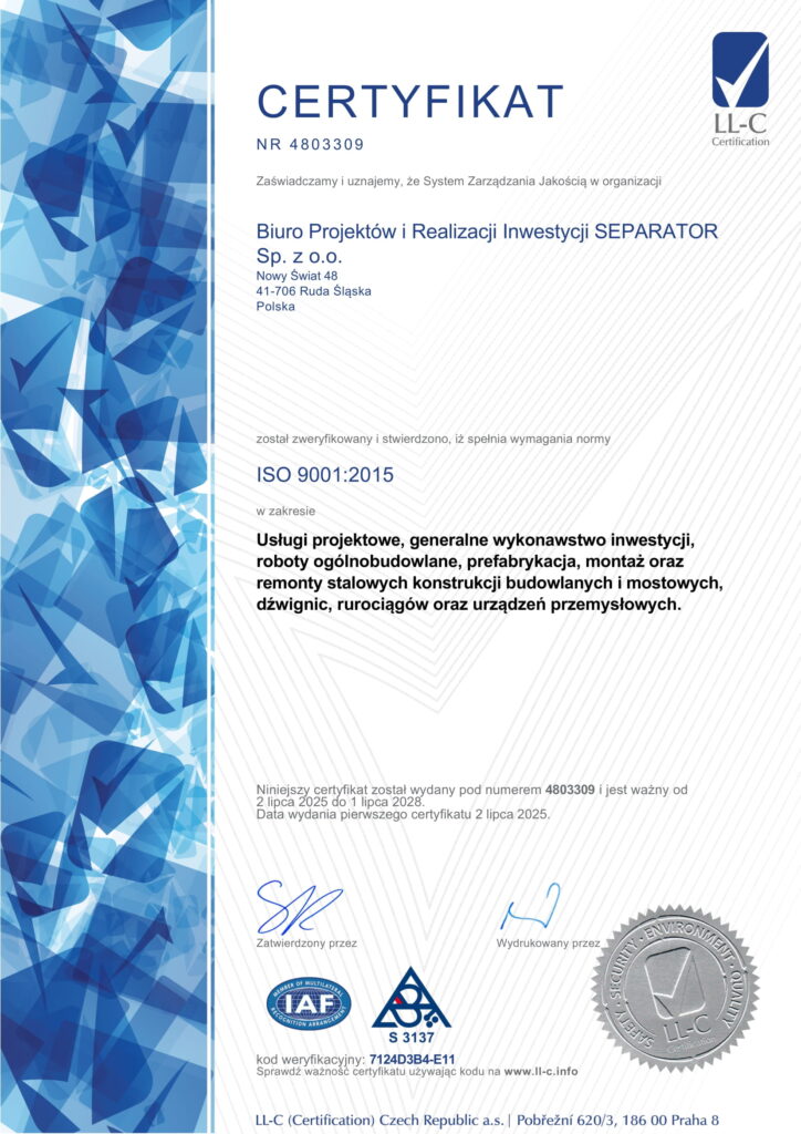 Biuro Projektów i Realizacji Inwestycji SEPARATOR Sp. z o.o. specjalizuje się w usługach inżynieryjno-realizacyjnych w zakresie: